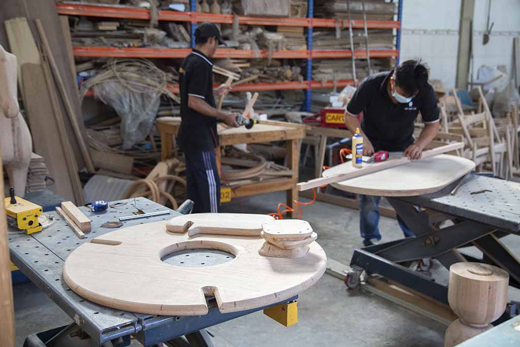 Sự trau chuốt, tỉ mỉ trong khâu sản xuất được thể hiện rõ qua các đường nét uốn cong mượt mà tại mặt bàn và chân bàn. Chúng tôi còn vát cạnh và sơn phủ lớp sơn PU bên ngoài nhằm đảm bảo an toàn cho người dùng, tăng giá trị thẩm mỹ và bảo vệ gỗ bền lâu hơn.